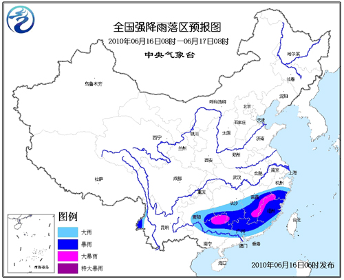 中央氣象臺(tái)今晨06時(shí)繼續(xù)發(fā)布暴雨黃色預(yù)警:預(yù)計(jì),6月16日08時(shí)到6月17日08時(shí),貴州南部、湖南南部、江西中南部、浙江南部、福建、廣東大部、廣西中北部、云南西部等地有大到暴雨。