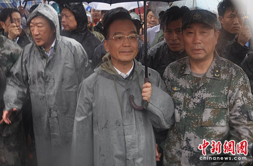當日上午,溫家寶冒雨深入重災區(qū)撫州羅針鎮(zhèn),察看汛情、災情,看望受災群眾,慰問奮戰(zhàn)在抗洪搶險一線的解放軍、武警、公安消防官兵。