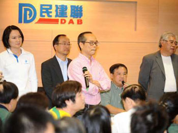 7日晚約300名雷曼苦主出席民建聯舉行的申訴大會,并商討特區政府提出的銀行回購債券方案,希望可以尋找理性的方法維護雷曼苦主的權益。民建聯副主席劉江華、立法會議員陳鑒林、李慧瓊、黃定光出席申訴大會。