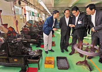 曾蔭權12日與香港5大商會代表舉行早餐會,聽取他們對企業方面的意見,下午即前往東莞實地考察當地港商的情況。他在東莞市長李毓全的陪同下,先到東莞鳳崗鎮一間五金制品廠參觀,該港資企業于1977年成立,聘有千多名員工,接著與約20名珠三角港資企業代表舉行座談會,進一步了解他們現時面對的營運困難。返回香港后,他于傍晚舉行記者會。