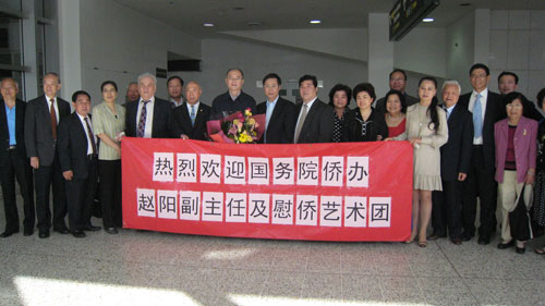 中新網2月17日電 16日,由國務院僑辦副主任趙陽率領的“文化中國·四海同春”藝術團抵達墨爾本國際機場,受到了中國駐墨爾本總領事沈偉廉和澳洲維省華人團體聯合會主席朱聯人、澳洲墨爾本洪門民治黨盟長雷謙光及眾多僑界人士的熱烈歡迎,僑胞代表向趙陽團長敬獻鮮花,趙陽團長感謝各位僑胞抽出寶貴時間到機場歡迎藝術團一行,感謝當地僑界及總領館為接待藝術團所做的精心安排。