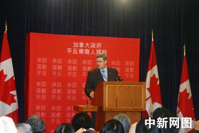 渥太華當地時間二〇〇六年六月二十二日下午三時,加拿大總理斯蒂芬·哈珀在加議會發表正式聲明,代表政府就人頭稅問題向全加華人道歉。