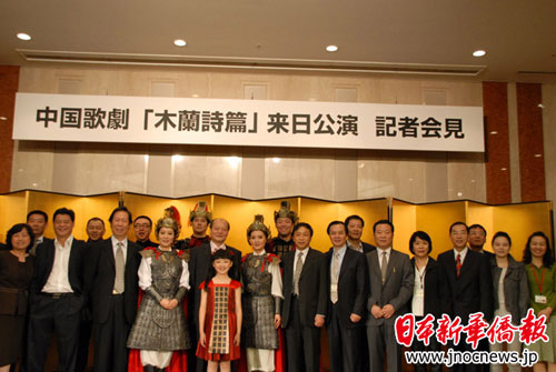 顏安原為中國人民解放軍總政治部歌舞團演員,走出國門以后一直從事中日文化交流活動。11月10日上午,他與剛剛抵達日本東京的本次出訪團副團長李福祥等共同主辦“中國歌劇《木蘭詩篇》新聞發(fā)布會”。