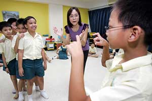 中新網(wǎng)9月21日電 據(jù)新加坡《聯(lián)合早報(bào)》報(bào)道,為了更好的在校內(nèi)普及華文教育,增強(qiáng)學(xué)生對(duì)華文的學(xué)習(xí)興趣,新加坡布蘭雅坡小學(xué)的華文老師陳翡翠和同事從2007年起,在校內(nèi)針對(duì)二年級(jí)華文校本課程內(nèi)容進(jìn)行創(chuàng)新實(shí)踐,把戲劇元素融入教學(xué)中。