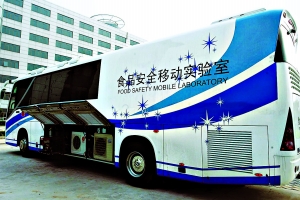 食品安全移動(dòng)實(shí)驗(yàn)室,到底是個(gè)什么樣子?單從外觀來看,這就是一輛普普通通的12米長的大客車,只是客車外噴上了藍(lán)色的“食品安全移動(dòng)實(shí)驗(yàn)室”的字樣。車廂里可是“麻雀雖小,五臟俱全”,擺放了各種精密儀器、試管、量杯……