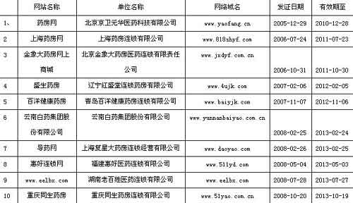 中新網12月8日電 今天上午,國家藥監局新聞發言人顏江瑛通報了截止到2008年12月8日,國家藥監局批準的向個人提供非處方藥品的10家互聯網藥品交易網站。(據中國網文字直播整理)