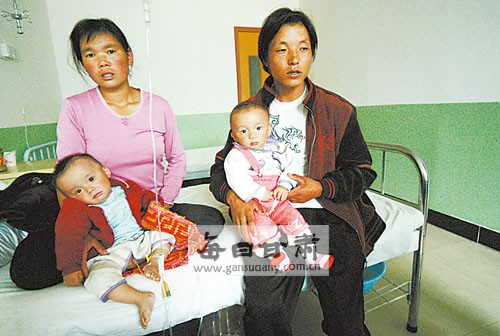 來自岷縣的雙胞胎患兒。記者陳若夢攝