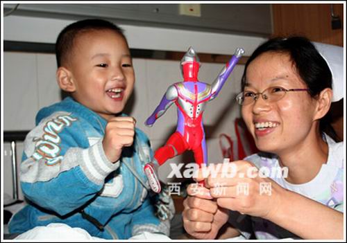 9月26日早上6時(shí),小郎錚在父母陪同下由綿陽到達(dá)西安。剛下火車時(shí),小家伙顯得異常興奮,與前來迎接的唐都醫(yī)院工作人員熱情擁抱。到達(dá)醫(yī)院后,醫(yī)護(hù)人員以最快速度為郎錚進(jìn)行了X光片、心電圖、肝功、腎功等常規(guī)項(xiàng)目檢查。