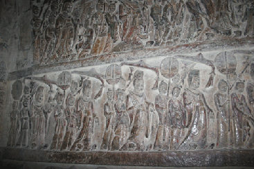 記者團鞏義之行的第三站是北魏時期開建的廟宇——石窟寺。這里保存的十五幅帝后禮佛圖,構圖嚴謹,技法嫻熟,人物性格鮮明,是佛教藝苑中的珍品。
