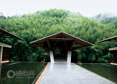 看似粗獷樸素的客家風(fēng)格的夯土,與竹子一道,形成十字水生態(tài)度假村的核心視覺景觀。度假區(qū)內(nèi)幾乎所有的建筑都有著高屋頂、青黃瓦和夯土墻,幾近落地的玻璃窗、超大的露臺(tái)、可以看到天空的浴室,所有的設(shè)計(jì)都讓住在其間的人們可以隨時(shí)與大自然“無縫連接”。令人心儀的是,客房?jī)?nèi)的配套用品也全部采用天然材質(zhì),如純絲和純棉的床上用品,竹子和木質(zhì)材料的家具,擺件也大多是陶土和石器制成的。為了最大程度地提升自然生態(tài)的視覺感受,度假村在別墅院落旁設(shè)置了眾多鏡面水池,水池中休憩著紫色的睡蓮,平整的水面將南昆山綠色的山景完整折現(xiàn),只需要在院落里支一張?zhí)梢,就可?60度完全沉醉在綠涌的林海里。