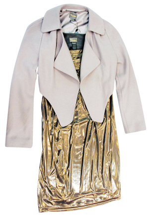 2 LOVE.WIN:灰閃外套3460元,淺灰高領衫1180元,黑短裙1780元