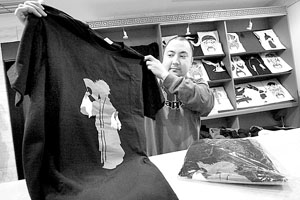 店員付天威向記者介紹,《梅蘭芳》電影上映后,這種印有京劇臉譜的黑色棉質T恤衫開始熱銷,《貴妃醉酒》扮相的這款T恤衫是他們的最愛,以前一天賣個三五件,現在每天銷量在30件以上。據記者了解,該T恤衫60元一件。(王丹 張東妮)