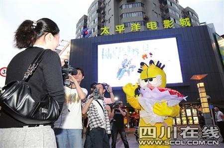 昨晚6點40分,周先生提前請來“助陣”的人群就開始在影城門口聚集起來。周先生的幾名同事忙碌地擺弄著幾束彩花,準備等一會兒派上用場。嗅到點反常的路人也紛紛駐足打聽。