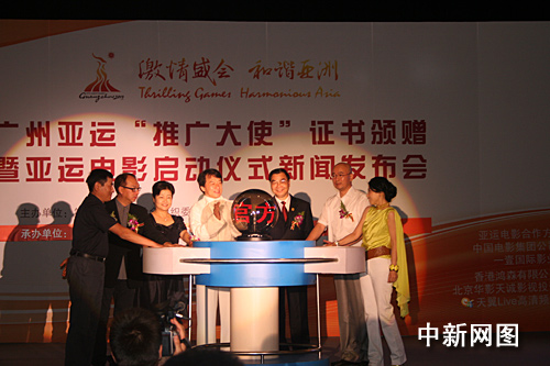 中新網6月2日電 6月1日,第16屆廣州亞運會“友好推廣大使 ”證書頒贈儀式暨亞運電影新聞發布會在北京釣魚臺賓館舉行。國際著名影星成龍正式成為“亞運推廣大使”,同時,2010年廣州亞運電影項目正式啟動。