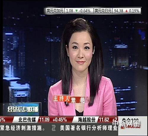 圖為章艷在央視財經頻道主持《經濟信息聯播》