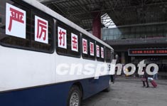 “春運(yùn)”將至,一輛頗具威懾力的大型警車停放在北京西站。北京鐵路警方已在主要車站加大警力,嚴(yán)打倒票行為。作者:張煒