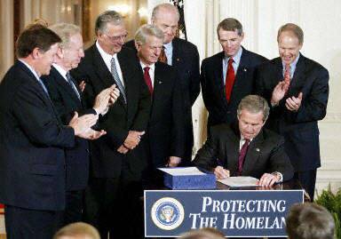 這是美國聯邦政府一九四七年以來最大規模的組織重整。新的國土安全部負責協調美國的安全和情報工作,融合了特勤局、海岸警衛隊、海關總署、移民歸化局、交通安全局等二十二個聯邦機構的職責,職員十七萬,今年的預算達到三百三十億美元。