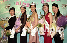 國際華裔小姐競選獲獎佳麗26日在港出席贊助商頒獎儀式,圖為五位應屆獲獎華裔小姐在頒獎儀式上。鄧慶樂攝