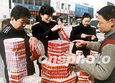山東省棗莊市質量技術監督局執法人員,春節前夕對轄區售賣煙花爆竹的攤點進行檢查,一些無日期、無用藥量的偽劣產品受到查封。作者:李 韓