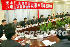 中國交通部、外經(jīng)貿(mào)部、信息產(chǎn)業(yè)部、民航總局和郵政總局等兩岸“三通”業(yè)務(wù)主管部門二十八日在北京舉行座談會,紀(jì)念江澤民主席《為促進祖國統(tǒng)一大業(yè)的完成而繼續(xù)奮斗》重要講話發(fā)表八周年。作者:毛建軍