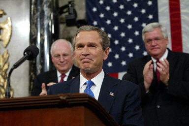 美國當地時間1月28日晚,布什總統在國會山發(fā)表了一年一度的《國情咨文》。