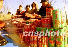 圖:山東農(nóng)村年貨市場上爆竹不禁賣