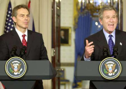 布什在會談結束后與布萊爾聯合舉行的記者招待會上說,國務卿鮑威爾下周將向聯合國安理會出示證據,證明“薩達姆正在愚弄世界”。他說,伊拉克問題“將在幾個星期,而不是幾個月內得到解決”,美國堅決反對任何將伊拉克問題拖延幾個月后再解決的企圖。