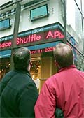圖:美國老太太為哥倫比亞號航天飛機獻花