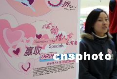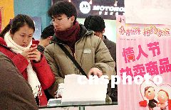 各大超市、商場、禮品店里,正忙著趕傳統春節“大集”尾聲的精明商家,也同樣沒有放棄對“情人節”這一絕好商機的競逐。巧克力、情人卡、鉆石飾物、情侶服飾等各種洋溢著浪漫色彩的禮品琳瑯滿目,且紛紛亮出優惠“旗號”來“誘惑”愛河中的男女。