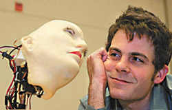 美國得州大學(xué)達(dá)拉斯分校的博士生大衛(wèi)·漢森是K-bot機器人的發(fā)明者。他利用一種具有24種人造肌肉的導(dǎo)電聚合物雕刻出K-bot的臉,而這些人造肌肉能夠促成面部動作。K-bot機器人的前輩——“安迪”機器人只能表達(dá)4種面部表情。