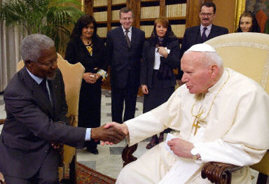 聯(lián)合國秘書長安南18日與羅馬天主教皇約翰保羅二世在梵蒂岡舉行了會談。