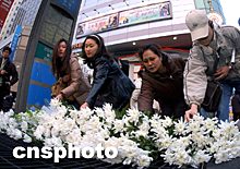 2月19日,韓國大邱群眾自發地將鮮花放在2月18日地鐵縱火案的事發現場,寄托哀思,悼念死難者。Ic/cnsphoto 攝