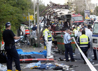 中新網(wǎng)3月6日電 以色列北部海濱城市海法5日下午發(fā)生的公共汽車自殺炸彈爆炸事件,已造成15人喪生,40余人受傷。這是兩個月來首次在以色列發(fā)生的自殺炸彈襲擊事件。