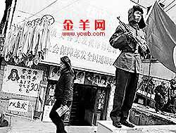 該男子身著“軍裝”,頭戴“軍帽”,手持“沖鋒槍”,背插紅旗……筆挺地站在一張板凳上,極力模仿雷鋒的模樣,招來路人一片嘲笑和指責。
