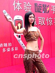 圖:廣州春季商戰開始 模特兒造勢展示手機