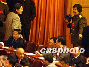 圖:邵華請李敏在政協(xié)大會閉幕會上留影