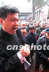 中新社鄭州三月十六日電 (張坤)“怒發沖冠,憑欄處,瀟瀟雨歇······”十六日上午,在河南湯陰岳廟,海內外岳氏宗親后裔齊唱《滿江紅》紀念南宋抗金名將、中國歷史上著名民族英雄岳飛誕辰九百周年,并舉行了盛況空前的祭祀活動。