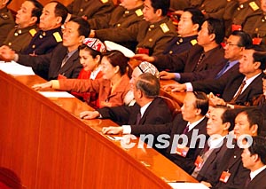 人大代表們三月十八日在北京參加十屆人大一次會議閉幕大會上按表決器,通過有關報告的決議。作者:賈國榮