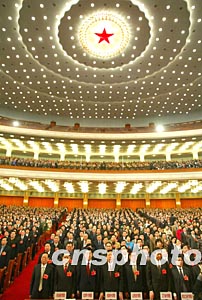 圖:十屆全國人大一次會議在國歌聲中閉幕