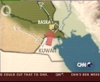 第3師出發(fā)后不久就與伊軍交上了火,據(jù)前衛(wèi)部隊發(fā)回的無線電,他們是與三輛伊軍裝甲運兵車遭遇的,經(jīng)過短短幾分鐘的混戰(zhàn),他們?nèi)珰灹诉@股伊軍。第3步兵師推進的速度異常之快,從夜里到天亮短短數(shù)小時,他們就已經(jīng)深入伊境內(nèi)150公里,平均以每小時30英里的速度推進。第5步兵師一名指揮官向記者透露說,他們師和兄弟部隊的任務(wù)就是在最短時間內(nèi)奪取兩河流域的戰(zhàn)略要地,隨后對巴格達(dá)實施合圍。