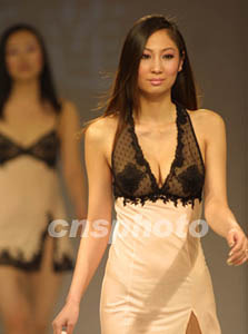 在北京舉行的2003年中國國際服裝服飾博覽會上,歐洲經典內衣28日晚進行了展示。作者:趙振清