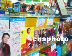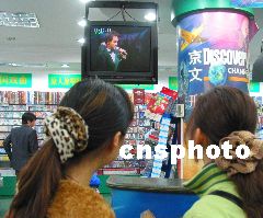 2003年4月2日下午,南京中山東路幾家音像店正在播放張國榮的音樂VCD,并有張國榮新音樂VCD面世。明后兩天,將會有新一批張國榮的音響制品到。吳芒子 攝