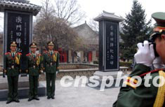 清明公祭軒轅黃帝典禮五日在陜西省黃陵縣軒轅廟前廣場舉行,出席典禮的陜西省武警總隊國旗護衛隊的武警在軒轅廟內的港澳回歸紀念碑前留影。作者:武仲林