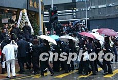 已故歌星張國(guó)榮設(shè)在香港殯儀館的靈堂于四月七日傍晚6時(shí)至8時(shí)開(kāi)放,眾多歌迷冒雨前來(lái)致祭。錢興強(qiáng) 攝