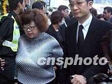 香港藝員沈殿霞四月八日在香港出席已故巨星張國榮舉殯。作者:錢興強