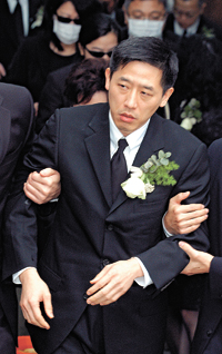 “哥哥”的告別儀式十分短暫,約十分鐘左右便完成,所有親友均按習(xí)俗以碌柚葉水洗手,各領(lǐng)一封英雄利是及“哥哥”的紀(jì)念卡。只見“唐唐”悲慟得全身軟弱無(wú)力,不能走路,要由兩個(gè)人攙扶,不停望著“哥哥”的照片若有所思并念念有詞。圍觀的歌迷更向他說(shuō):“‘唐唐’,振作些!”