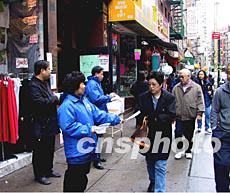 紐約僑界于當地時間十二日在華埠派發預防非典型肺炎的中文說明。目前紐約被懷疑可能是非典型肺炎的病例有八起,華埠沒有發現病例。作者:趙海燕