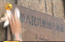中國駐伊拉克大使館遭到暴徒兩度搶掠一空,香港鳳凰衛(wèi)視女記者隗靜星期二(15日)到大使館內(nèi),看到劫后的使館滿目瘡痍。隗靜已將兩面遭掠后留在地面上的中國國旗收好,準備轉(zhuǎn)交給中國外交部,她更用僅有的半瓶礦泉水,將大使館門前的黃銅門牌擦拭干凈。
