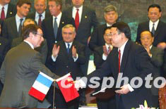 溫家寶強調,中方同樣重視對法關系,將中法關系視為中國對外關系的重點之一,并愿與法方一道努力把中法關系提高到一個新的水平。溫家寶積極評價中法關系的發展勢頭。他說,中法關系特點顯著,表現在雙邊政治關系和戰略對話較深,在一系列重大問題上有共識。中法互為重要的經貿合作伙伴,在一些重大項目上進行了成功的合作。兩國文化交流蓬勃發展,以實際行動推進不同文明之間的對話。