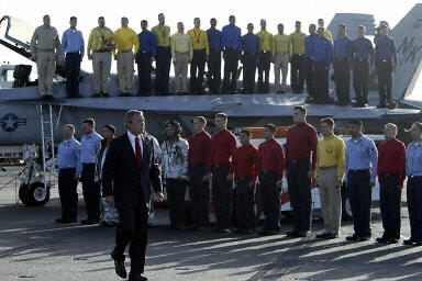 美東部時間5月1日,美國總統布什在從海灣返航的“林肯”號航母上發表講話,稱伊拉克戰爭的“主要戰斗行動”已經結束,聯軍在戰斗中取得了勝利。